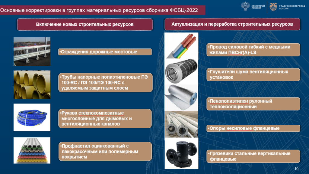 Слайд 10. Основные корректировки в группах материальных ресурсов сборника ФСБЦ-2022