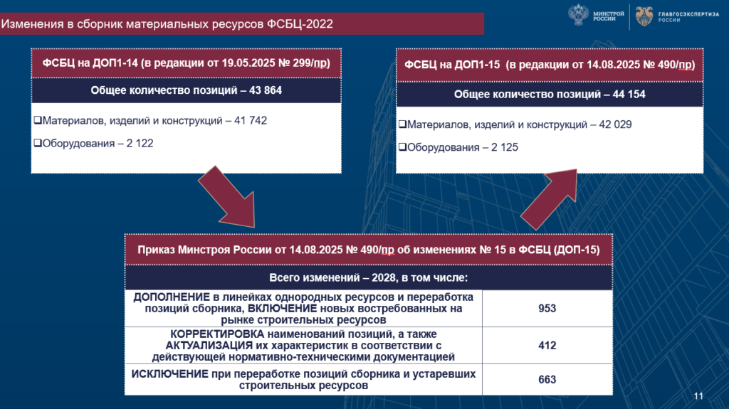 • исключения – 663 позиций в результате переработки сборника и отмены устаревших строительных ресурсов.